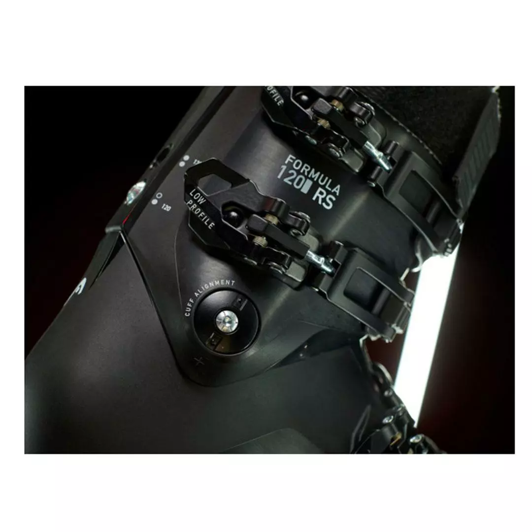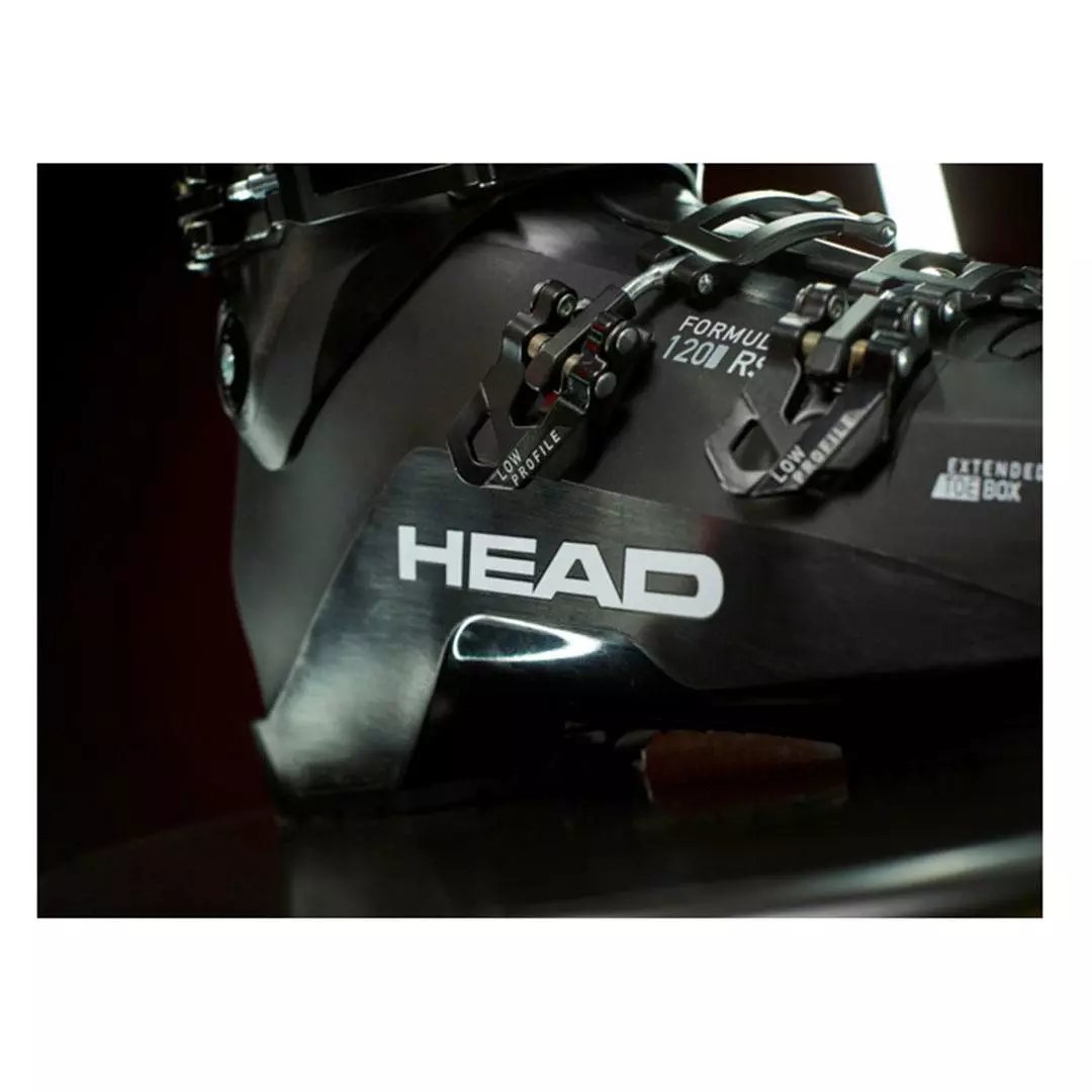 HEAD’s new formula for success is the Formula RS 120. Trickle down race knowledge results in high-level frontside performance combined with a comfort-oriented customizable fit applauded by bootfitters. Available with a 98-mm last, the Formula RS 120 has an extended toe box for toe articulation and a Race balance stance that allows skiers to be more centered. The shell has an adjustable flex of 130 to 120, cuff alignment capabilities and four micro-adjustable Spine-Flex low profile buckles. The 3D Pro Formula liner has heel and ankle supporting Liquid Fit and a 50mm Velcro strap for an athletic wrap.
