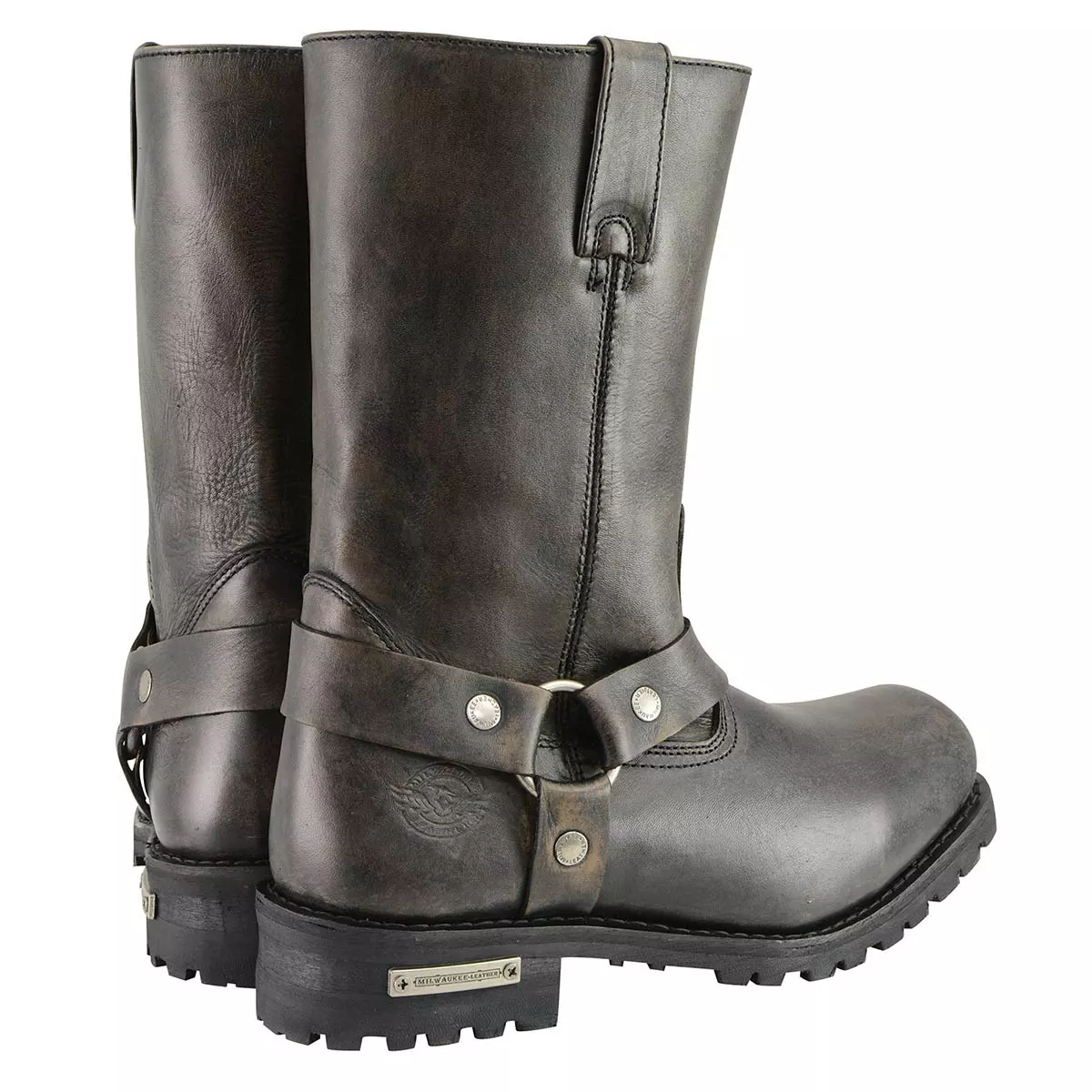 Milwaukee Leather MBM9005 Men’s Distressed Brown Water-Resistant 11-Inch Square Toe Harness Boots