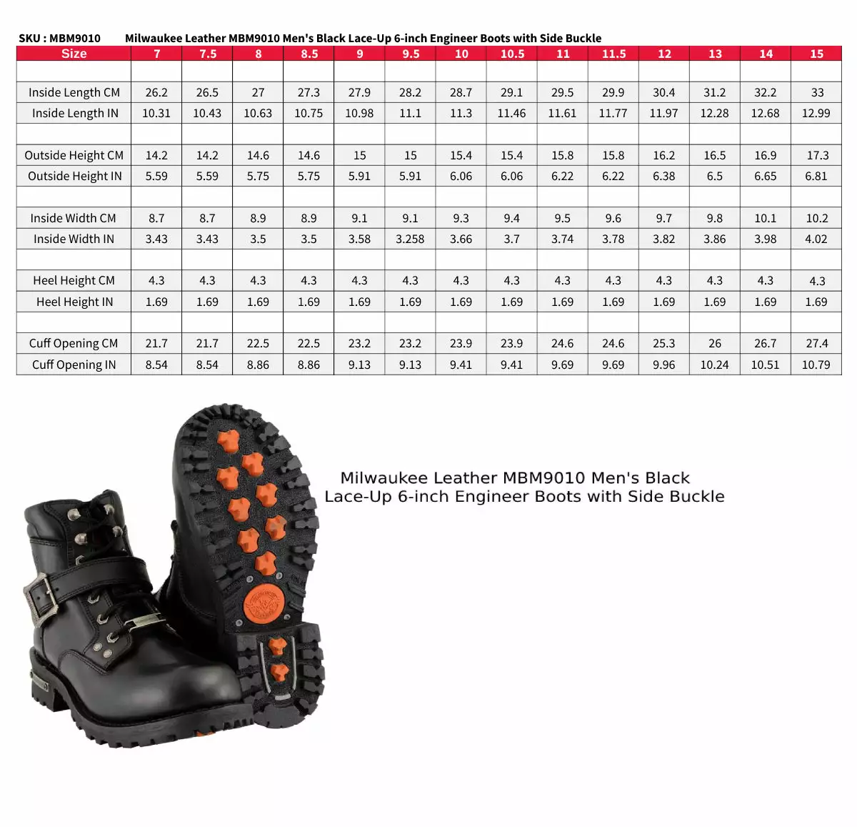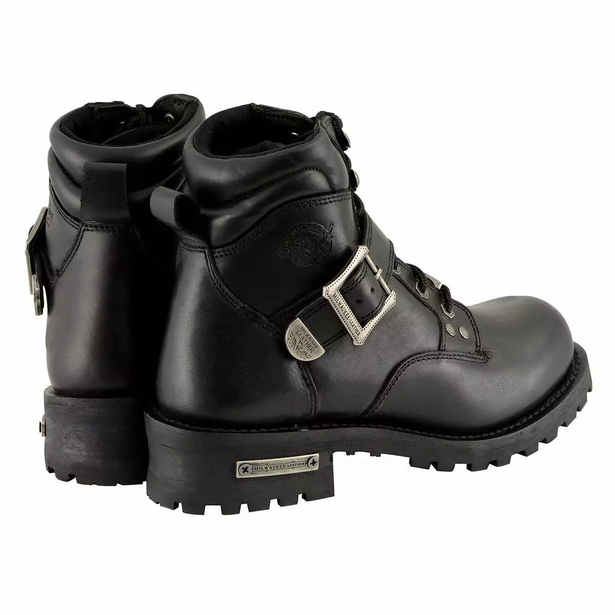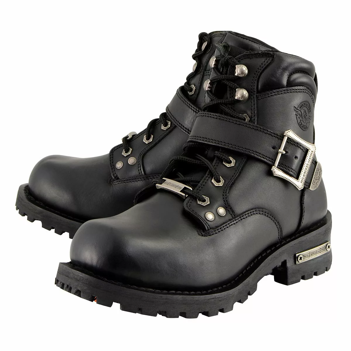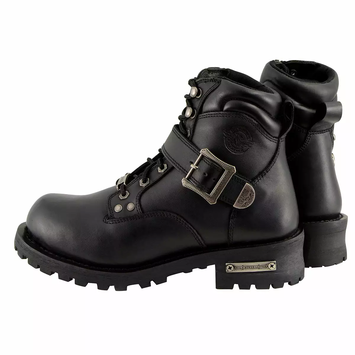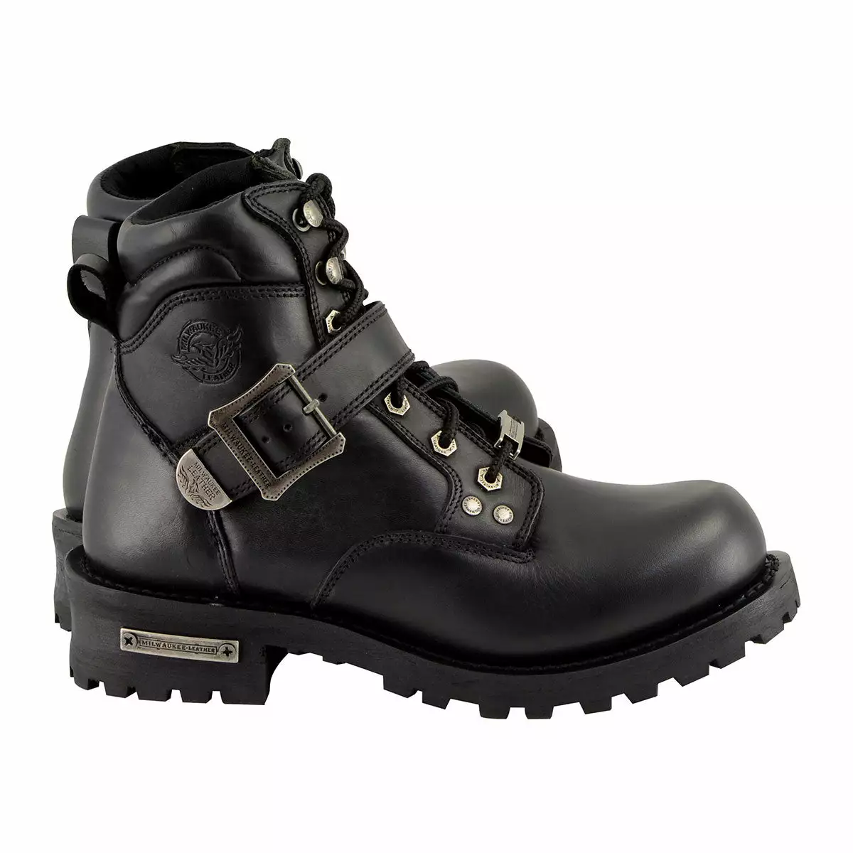 Milwaukee Leather MBM9010 Men’s Black Lace-Up 6-inch Engineer Boots with Side Buckle