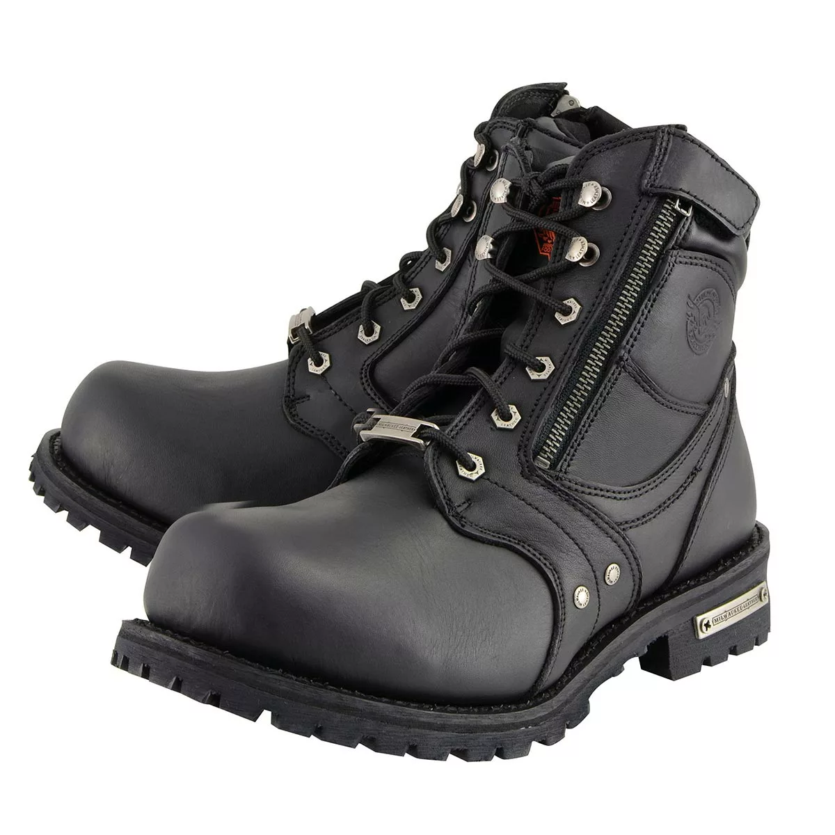 Milwaukee Leather MBM9050 Men’s Black 6-inch Lace-Up Boots with Zipper Closure