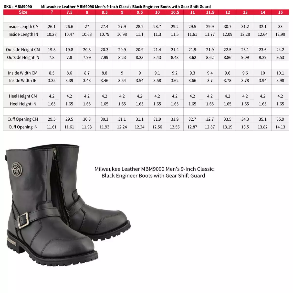 Milwaukee Leather MBM9090 Men’s 9-Inch Classic Black Engineer Motorcycle Boots with Gear Shift Guard
