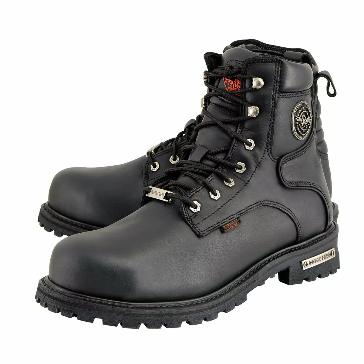 Milwaukee Leather MBM9097WPST Men’s Black ‘Wide-Width’ 6-inch Logger Steel Toe Water Proof Leather Boots