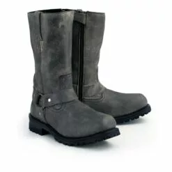 M-Boss Apparel BOS49000 Men’s Classic 12-inch Distress Grey Harness Leather Motorcycle Boots