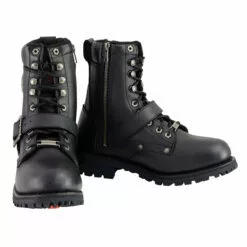Milwaukee Leather MBM101 Men’s Black Leather Lace-Up Engineer Motorcycle Boots W/ Buckles And Side Zipper Entry