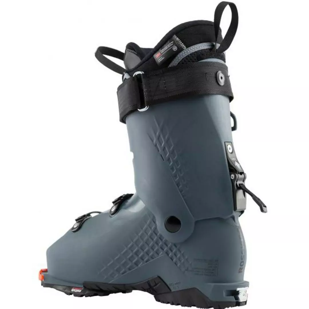 The lower boot shell is designed to offer a 50-degree range of motion in walk mode for efficient touring and maximum power for skiing when in ski mode