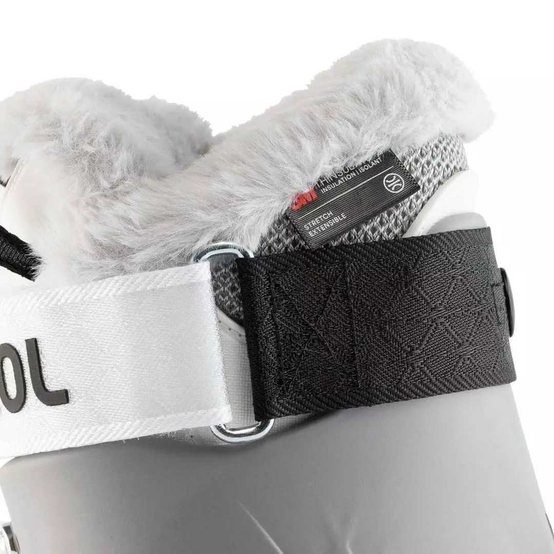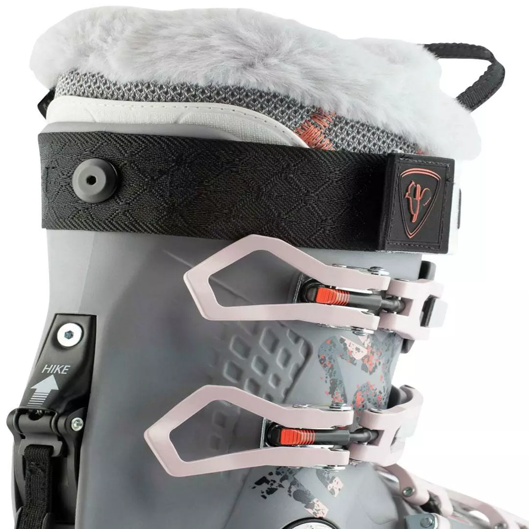Women’s sports downhill boots Rossignol Alltrack Elite 110 W GW – performance suits experienced skiers. The walking switch loosens the upper frame so that your walking movement is free and natural. The Dual Core skeleton with a generative design makes the shoe significantly lighter. The heat-adaptable 98 mm wide boot guarantees a precise fit around the leg and ensures maximum control and precise control of the skis. The extra soft Thinsulate fiber keeps the warmth in the shoes. The lower and wider rear part of the ski boot eliminates unpleasant pressure on the calf muscle, making skiing significantly more comfortable.