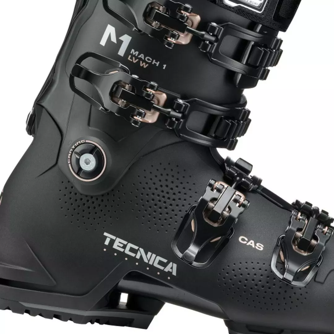 Made for those women who get out there whether the snow gods have delivered or not, the Mach1 LV 105 W TD is a high-performance ski boot designed for advanced to expert level women with medium-volume feet. Grounded in the fundamentals of high-performance ski boot design, the new LV 105 W features T-Drive technology which is a revolutionary shell to cuff connection that allows the boot to function in a much more efficient way. This results in a smoother more consistent flex, better performance and less energy required to ski at a high level. When you add the women’s specific Asymmetrical Power Transmission shell and cuff design to the equation you get a precise feeling boot that is completely at home in any type of terrain or snow condition. Fit is priority number one in the new LV 105 W and women’s specific Custom Adaptive Shape C.A.S. technology is the way we achieve it. Developed with an anatomically shaped shell and liner, the C.A.S. technology provides a great fit right out of the box but allows the boots to be fully customized if need be. Ski it all and ski it well.