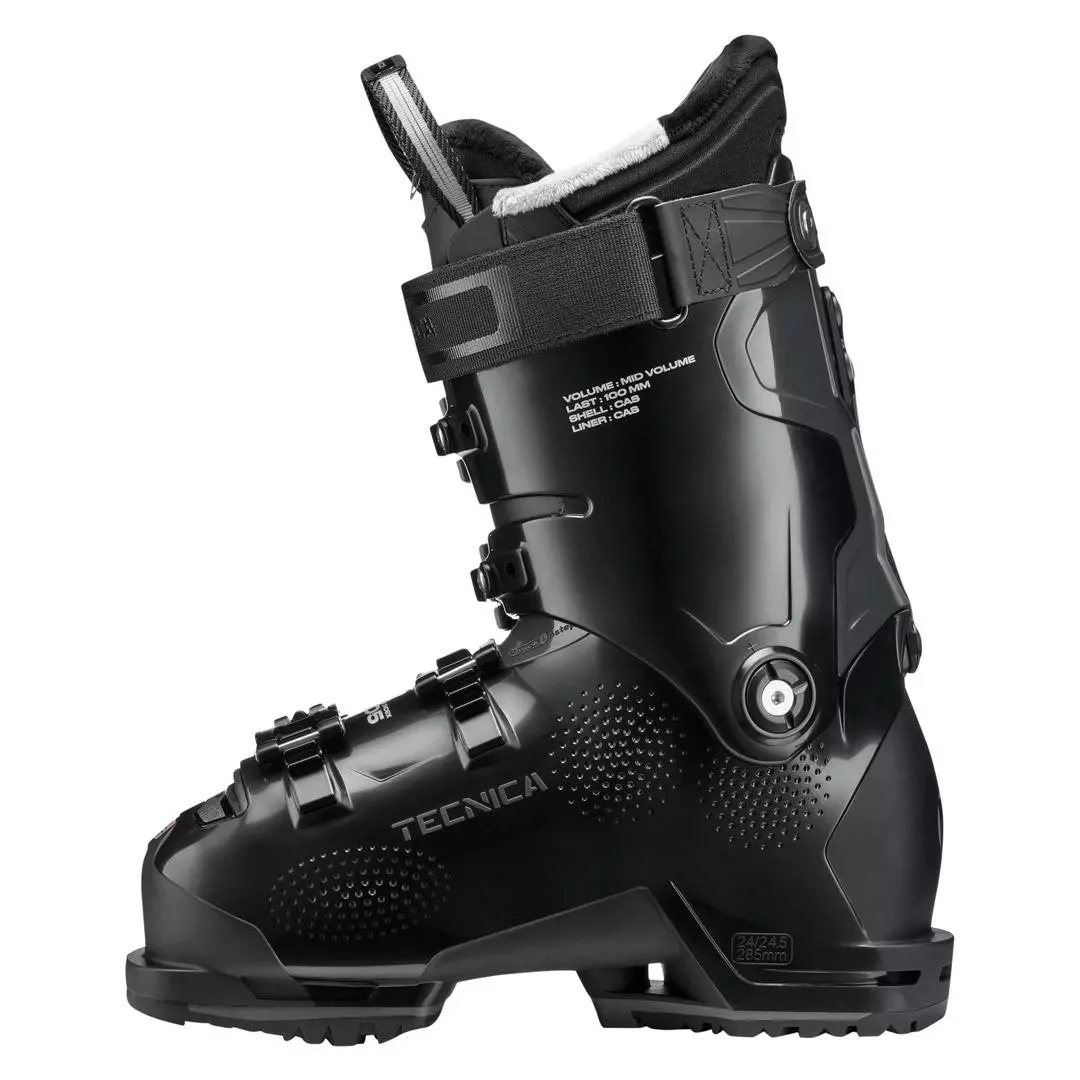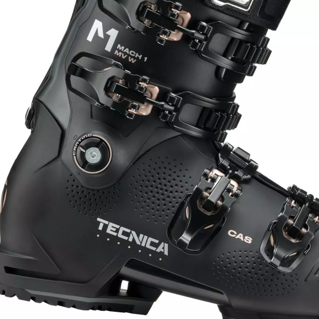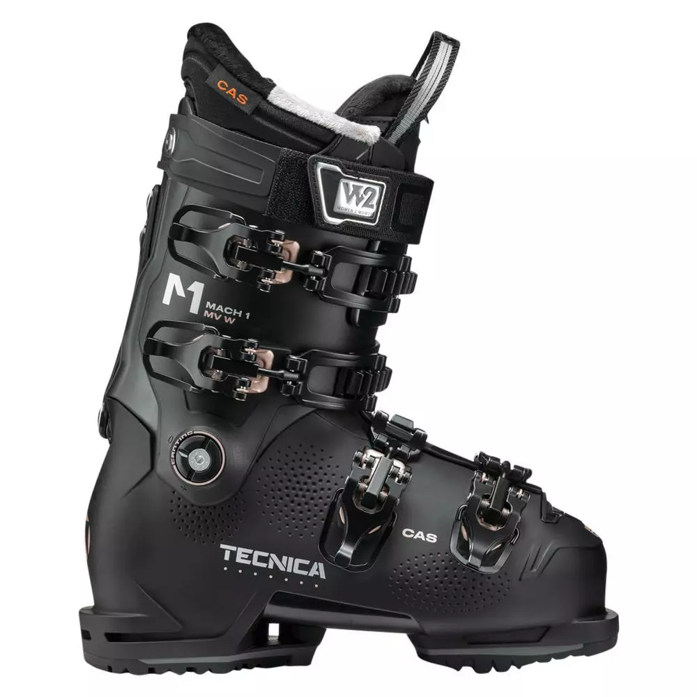 Designed with input from our Women 2 Women program, the Mach 1 MV 105 W with T-Drive Technology is a high-performance ski boot specifically designed for strong female skiers with medium volume feet. Fit is priority number one in the MV 105 W and women’s specific Custom Adaptive Shape C.A.S. technology in the liner and cuff is the way we achieve it. Developed with an anatomically shaped and women’s specific shell and liner, the C.A.S. technology provides a great fit right out of the box but also allows a high level of customization if need be. The C.A.S. Cuff Adapt System quickly and easily adjusts volume of the top of the cuff to fit a variety of lower leg shapes. The Asymmetric shell and cuff design in combination with the Women’s Natural Stance setup puts you in the perfect balanced position to tap into all the energy and performance of your skis. And with flex rating of 105 this boot gives you the power and support you need to charge all over the mountain with control and confidence. Get out there and shred ladies.